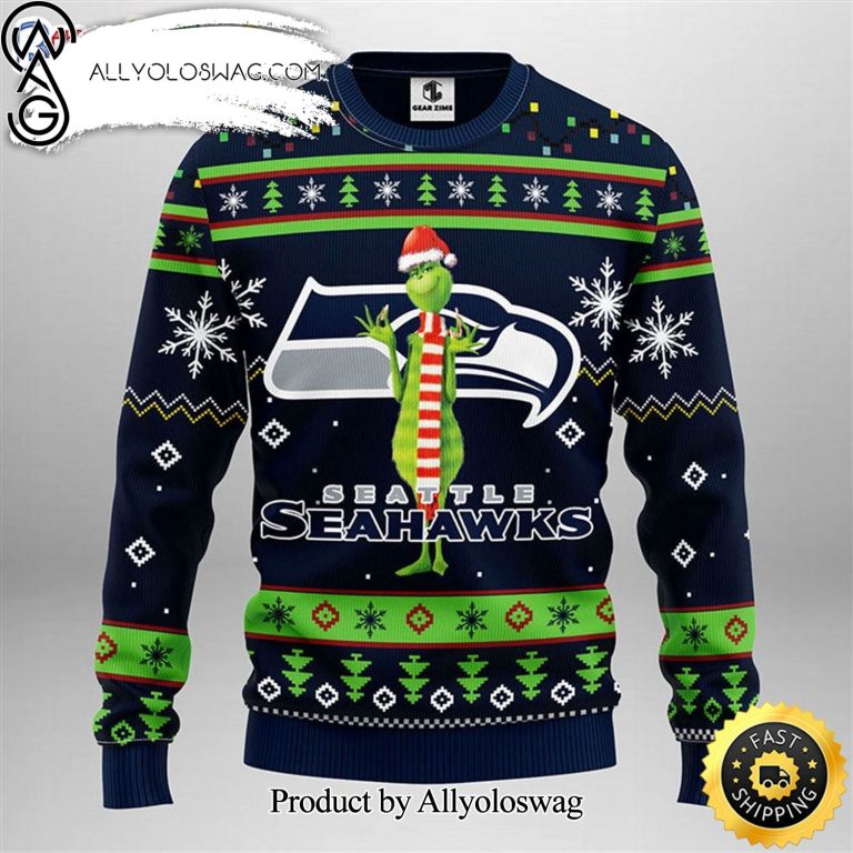 NOTE: [Top-selling] Seattle Seahawks Funny Grinch Show Your Team Spirit Knitting Pattern Ugly Christmas Holiday Sweater