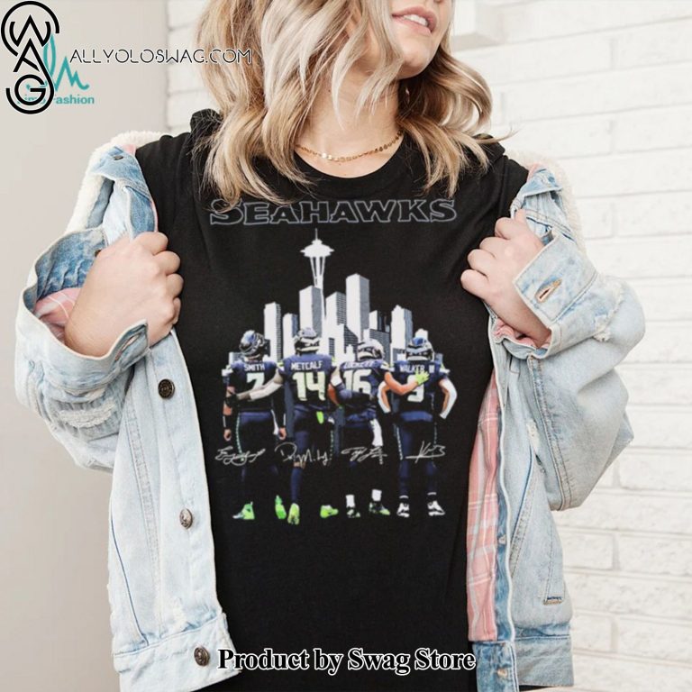 NOTE: [Top-selling] Seattle Seahawks Geno Smith Dk Metcalf Tyler Lockett And Kenneth Walker III Signatures Shirt