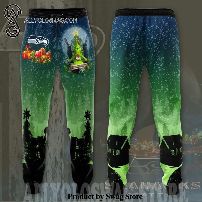 NOTE: [Top-selling] Seattle Seahawks Grinch Christmas Night Full Printing Galaxy Casual Unisex Sweatpants – Blue Green
