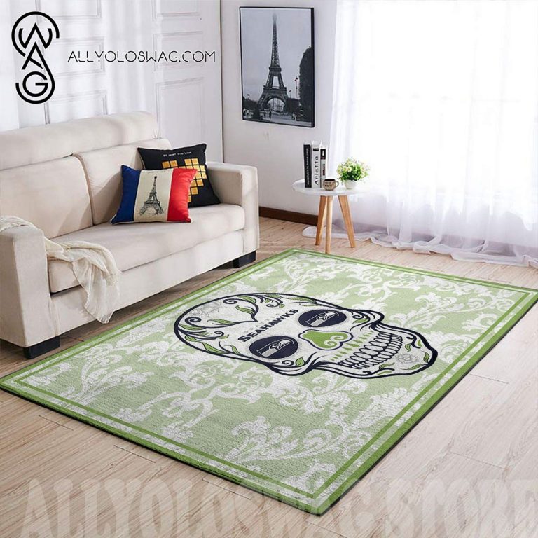 Product description information – [Top-selling] Seattle Seahawks NFL Team Logo Skull Flower Style Nice Gift Home Decor Rectangle Area Rug 1522