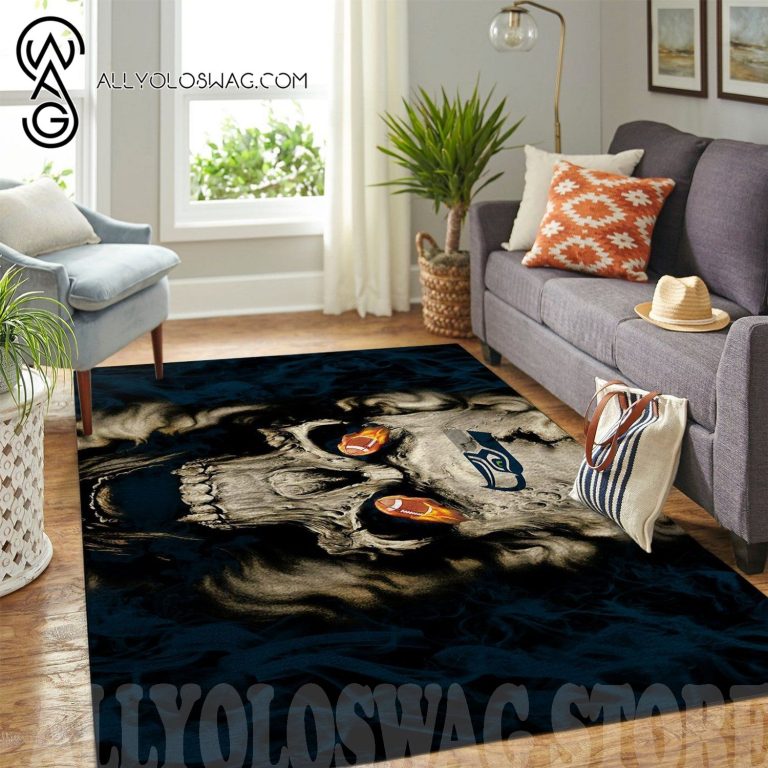 Product description information – [Top-selling] Seattle Seahawks NFL Team Logo Skull Style Nice Gift Home Decor Rectangle Area Rug 1467