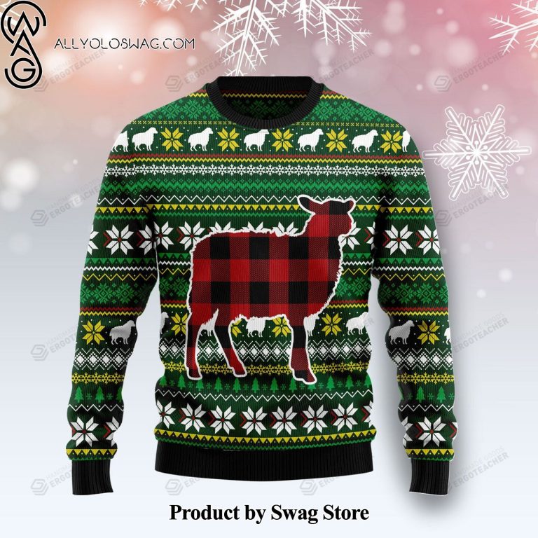 [Top-selling] Sheep Red Plaid Christmas Knitting Pattern Ugly Christmas Holiday Sweater