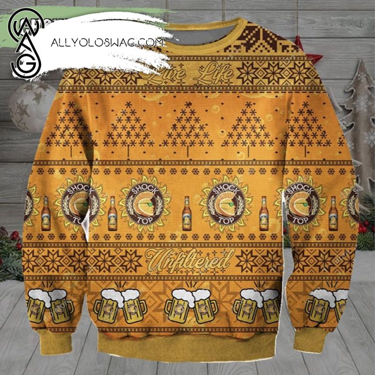 NOTE: [Top-selling] Shock Top Beer Knitting Pattern Ugly Christmas Sweater Unisex
