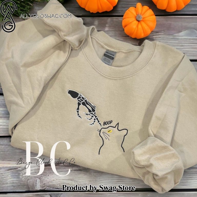NOTE: [Top-selling] Skeleton Cat Boop Sweatshirt, Embroidered, Nose Boop, Cat Lovers, Fall, Halloween