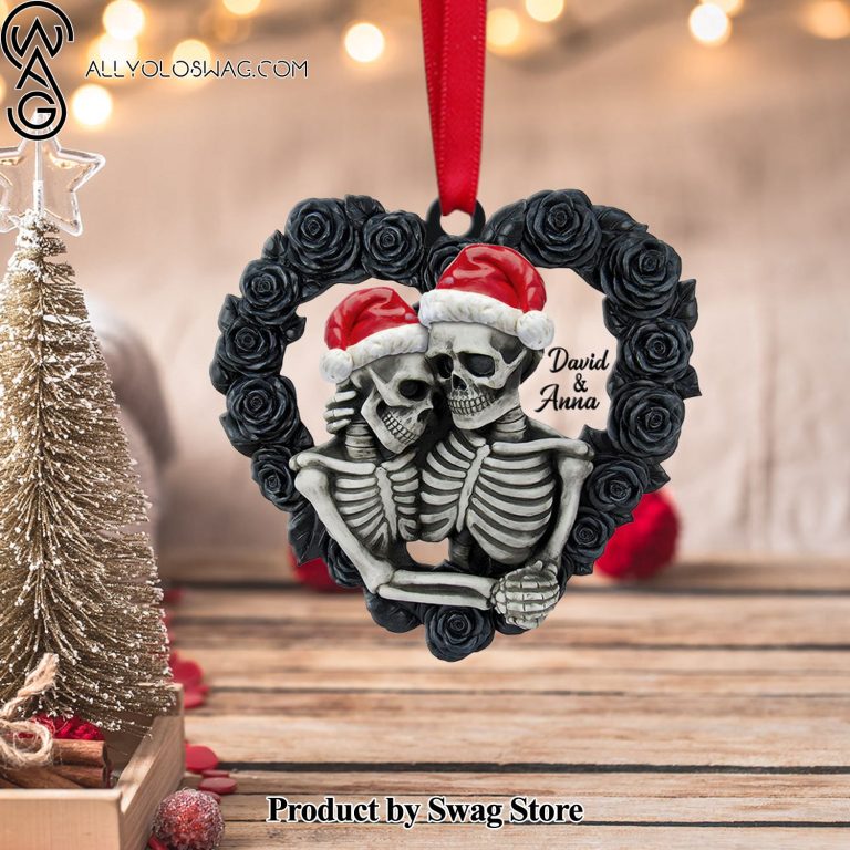 [Top-selling] Skeleton Couple – Custom, Black Rose Heart Shape, Christmas Tree Decor Ornament Description Information: