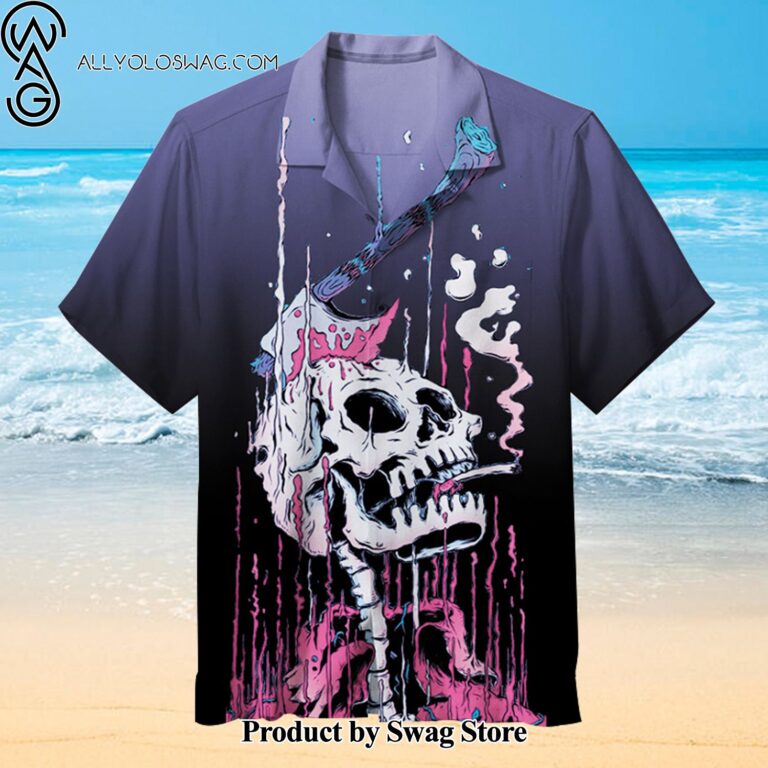 [Top-selling] Skeleton smoking Golf Outing Hawaiian Shirt description information