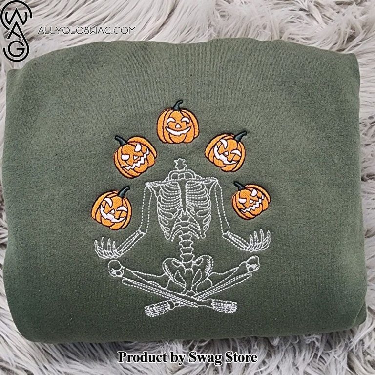 NOTE: [Top-selling] Skeleton Throwing Pumpkin Embroidered Sweatshirt