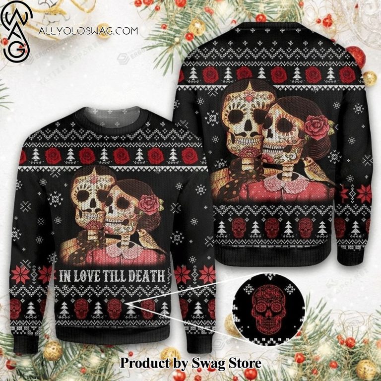 Some details about our [Top-selling] Skull In Love Till Death Knitting Pattern Ugly Christmas Holiday Sweater