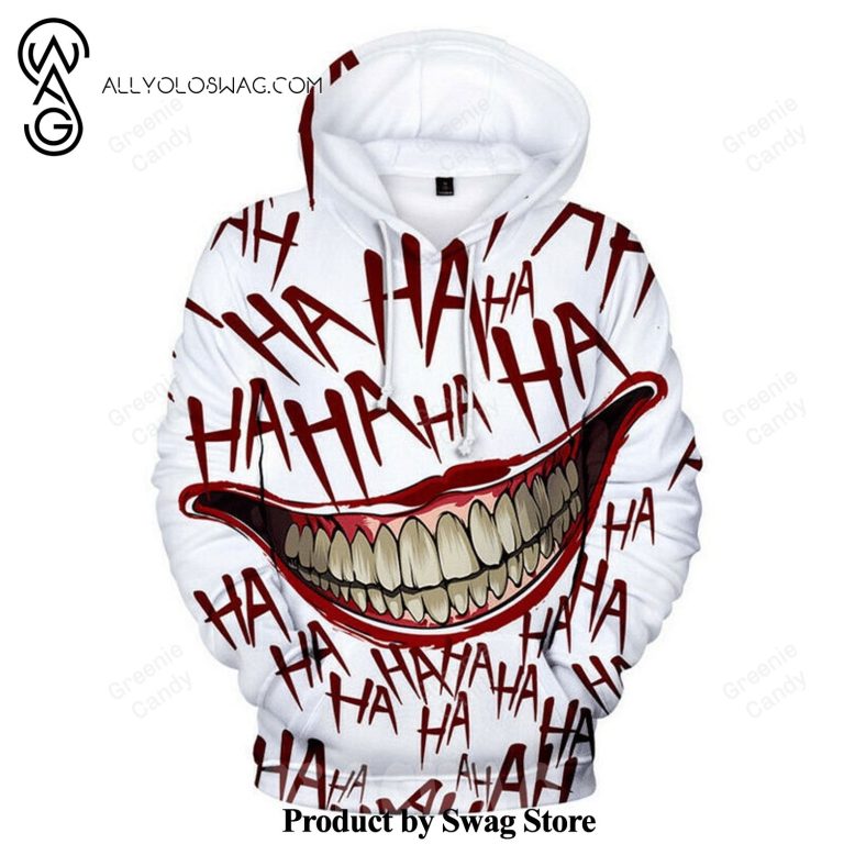 [Top-selling] Smiling Mouth Hahahaha Full Printing Hoodie – White