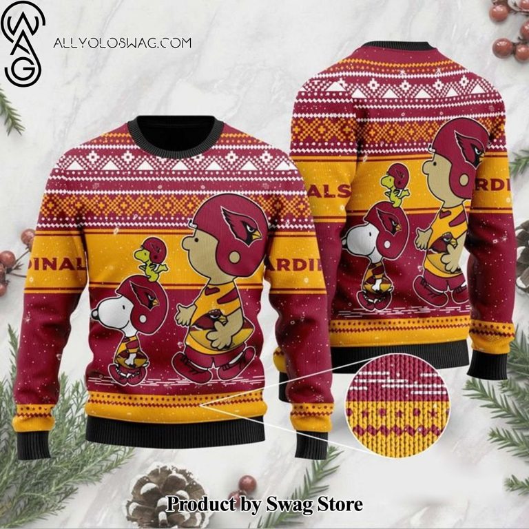 Some details about our [Top-selling] Snoopy And Charlie Brown Arizona Cardinals For Fans Knitting Pattern Ugly Christmas Sweater