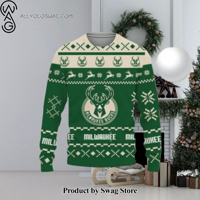 NOTE: [Top-selling] Snow Santa Pattern Logo Milwaukee Bucks Hot Trend For Fans Club Woolen Christmas Ugly Sweater