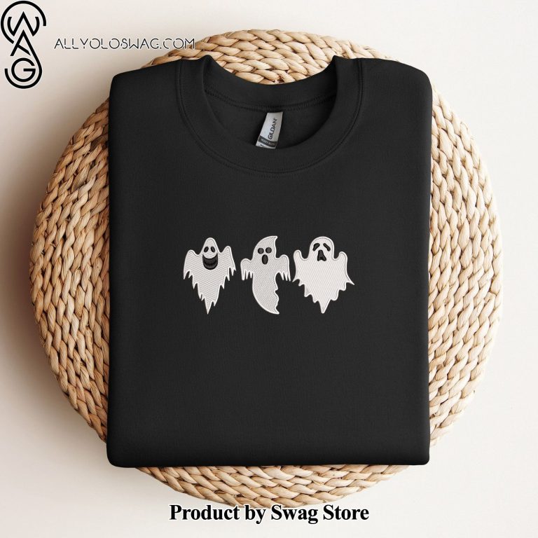 [Top-selling] Spooky Ghost Embroidered Sweatshirt, Halloween Embroidered Sweatshirt