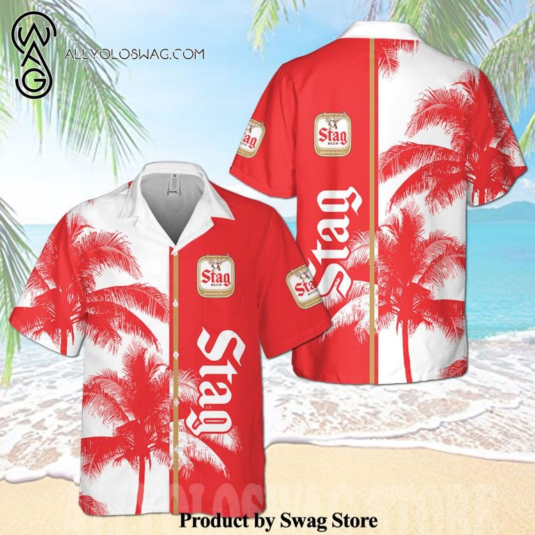 Some details about our product [Top-selling] Stag Beer Palm Tree All Over Print Aloha Summer Beach Hawaiian Shirt – White Red