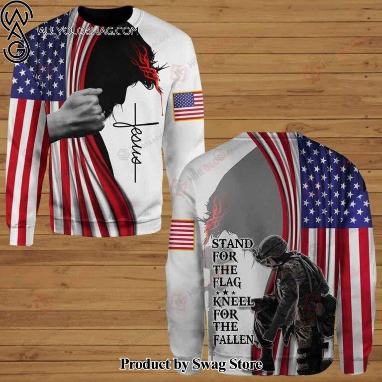 Some details about our [Top-selling] Stand For The Flag Kneel For The Fallen Ugly Xmas Wool Knitted Sweater