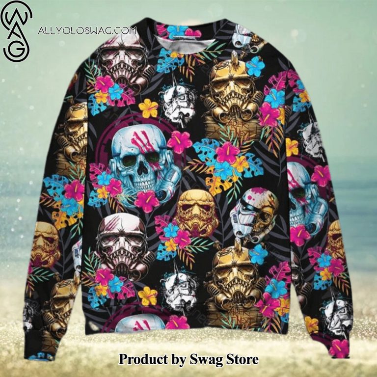 [Top-selling] Starwars Stormtrooper Skull Tropical Neon Ugly Christmas Sweater