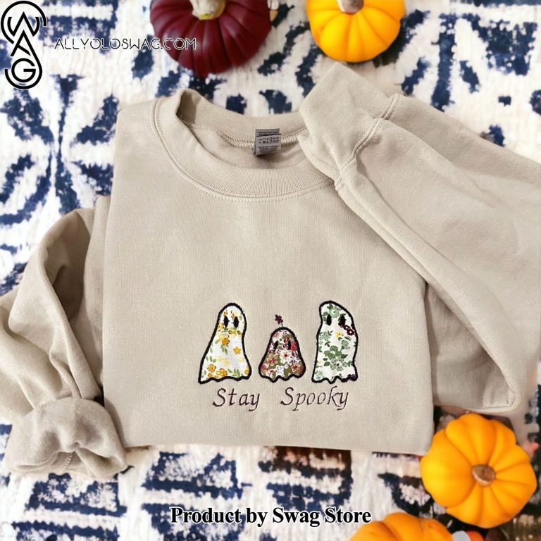 NOTE: [Top-selling] Stay Spooky Flowery Ghost Embroidered Halloween Sweatshirt