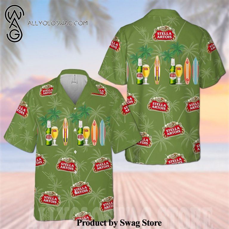 Some details about our product [Top-selling] Stella Artois Palm Tree All Over Print Aloha Summer Beach Hawaiian Shirt – Green