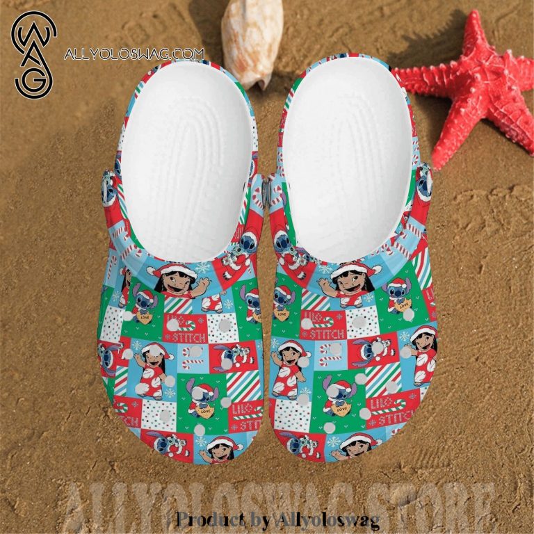[Top-selling] Stitch Lilo Christmas Hat Xmas Gift Comfortable Classic Waterar Crocs Unisex Crocband Clogs