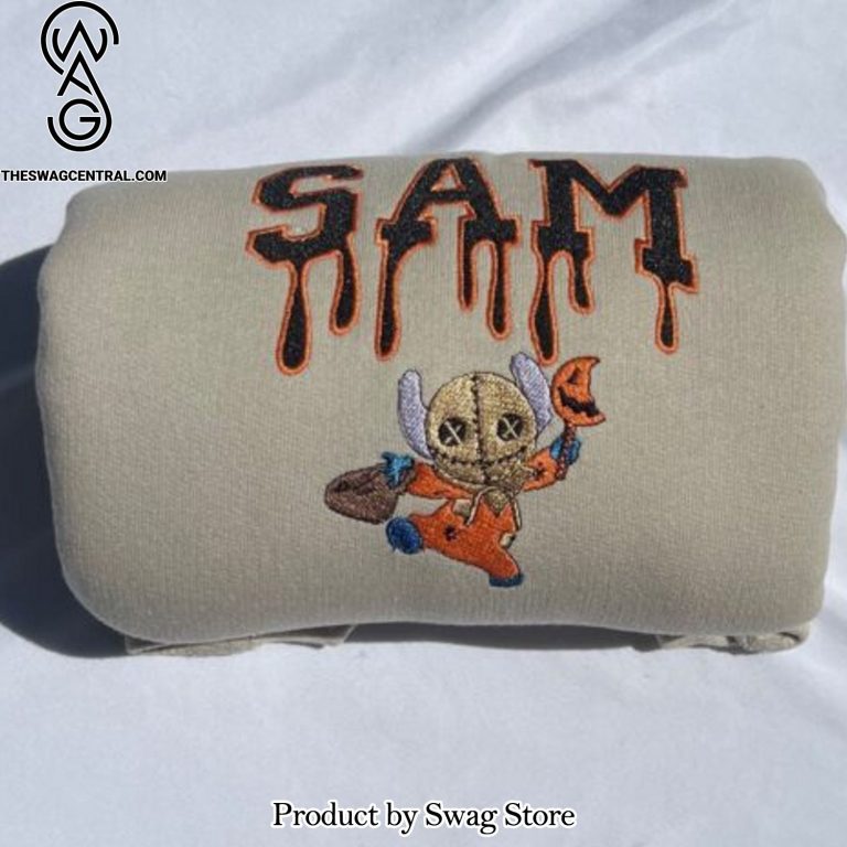 NOTE: [Top-selling] Stitch X Sam Pumpkin Halloween Embroidered Shirt Stitch Embroidery T-Shirt Stitch Embroidered Sweatshirt Stitch