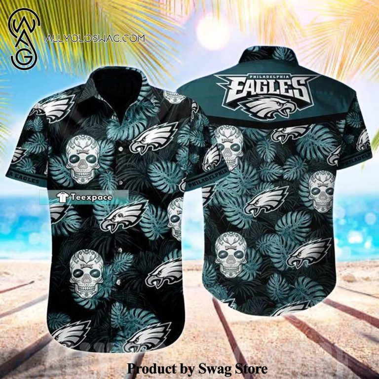 [Top-selling] Sugar Skull Floral Philadelphia Eagles Summer Set Hawaiian Shirt was hand-tailored in the early days of fashion. This might happen in the comfort of one’s own home or at a custom tailor’s business. These stores immediately sprang up all across the islands, especially in plantation towns and Honolulu. Newly accessible fabrics from throughout the world were sold at dry goods stores, including printed silk from Japan, raw silk, batik, and rayon from the United States mainland, and cotton cloth for kimonos and yukatas.Hawaiian history had long been shaped by Asian immigrants, and apparel designs reflected this. Short- and long-sleeved shirts, as well as women’s skirts, were created using pre-printed textiles from China and Japan and were based on Asian clothing styles. These bright blouses and dresses were the forerunners of today’s Aloha attire. On the islands, we say “ono” to describe something that is pleasantly cool.
