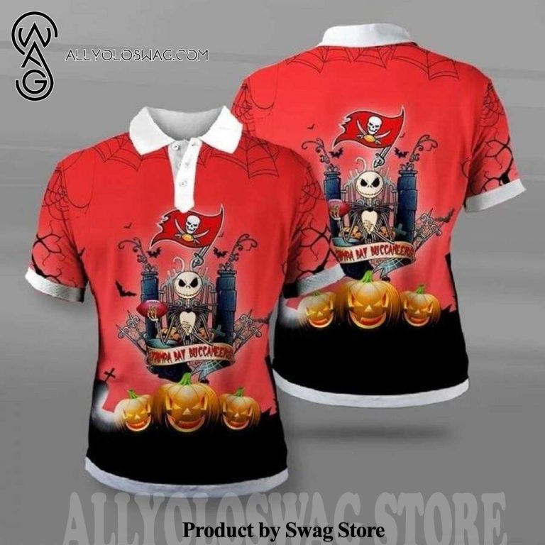 The origins of the [Top-selling] Tampa Bay Buccaneers Halloween All Over Printed Polo Shirt can be traced back to the early 20th century when it was primarily worn by polo players. Its design was inspired by the need for a practical yet stylish garment that allowed for ease of movement during the fast-paced game. The polo shirt features a soft collar, a buttoned placket at the neck, and a relaxed fit that allows for comfortable and unrestricted movement.
