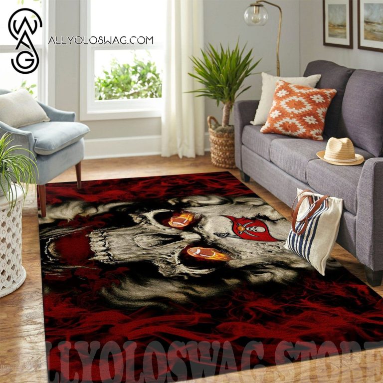 Product description information – [Top-selling] Tampa Bay Buccaneers NFL Team Logo Skull Style Nice Gift Home Decor Rectangle Area Rug 1615