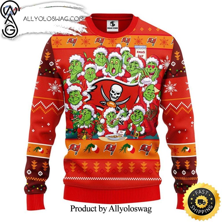 Some details about our [Top-selling] Tampa Bay Buccaneers Print 12 Grinch Xmas Day Show Your Team Spirit Knitting Pattern 3D Print Ugly Sweater