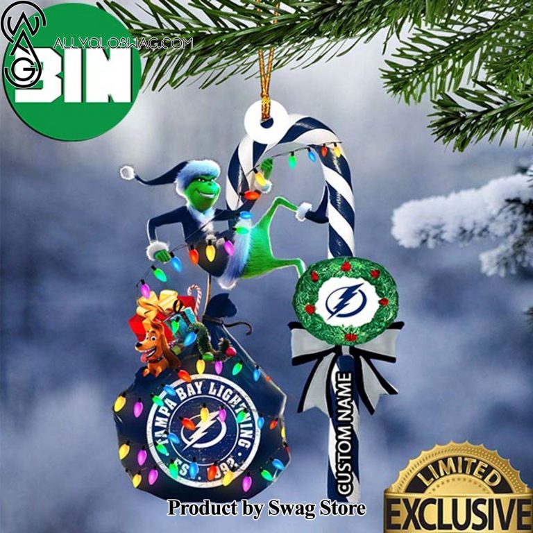 NOTE: [Top-selling] Tampa Bay Lightning NHL Grinch Candy Cane Custom Name Christmas Tree Ornament