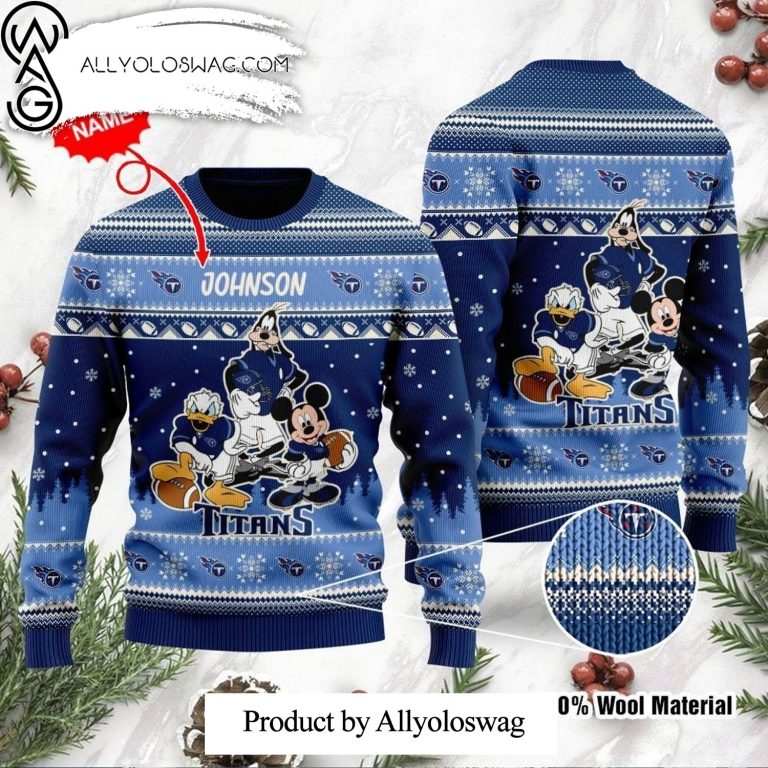 NOTE: [Top-selling] Tennessee Titans Disney Donald Duck Mickey Mouse Goofy Personalized Woolen Christmas Ugly Sweater