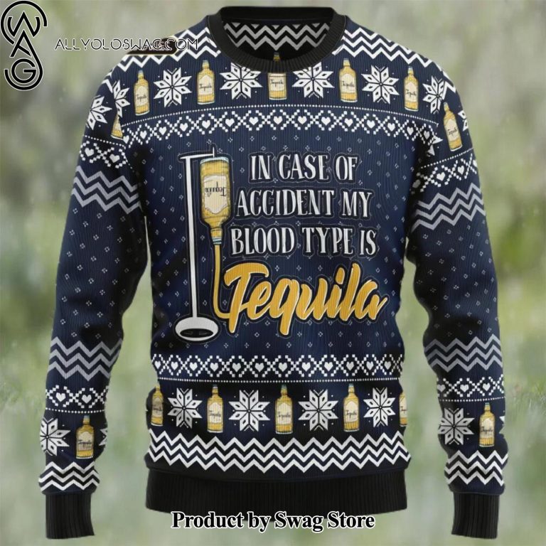 NOTE: [Top-selling] Tequila My Blood Type Knitted Ugly Christmas Sweater Xmas Sweater