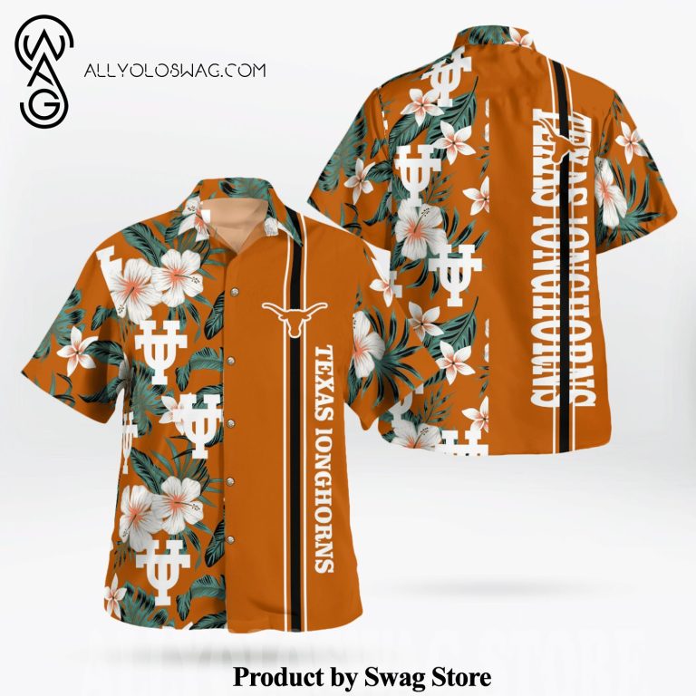 Hawaiian Shirt [Top-selling] Texas Longhorn All Over Print Flowery Aloha Summer Beach Hawaiian Shirt – Orange