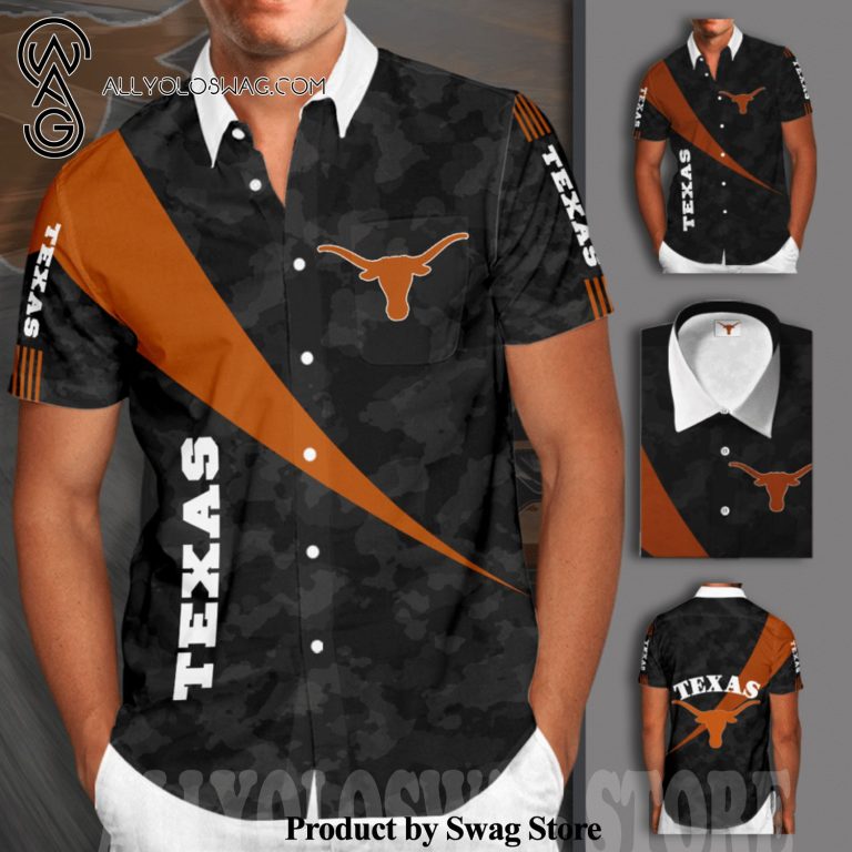 Some details about our product [Top-selling] Texas Longhorns All Over Print Camo Short Sleeve Dress Shirt Hawaiian Summer Aloha Beach Shirt – Black
