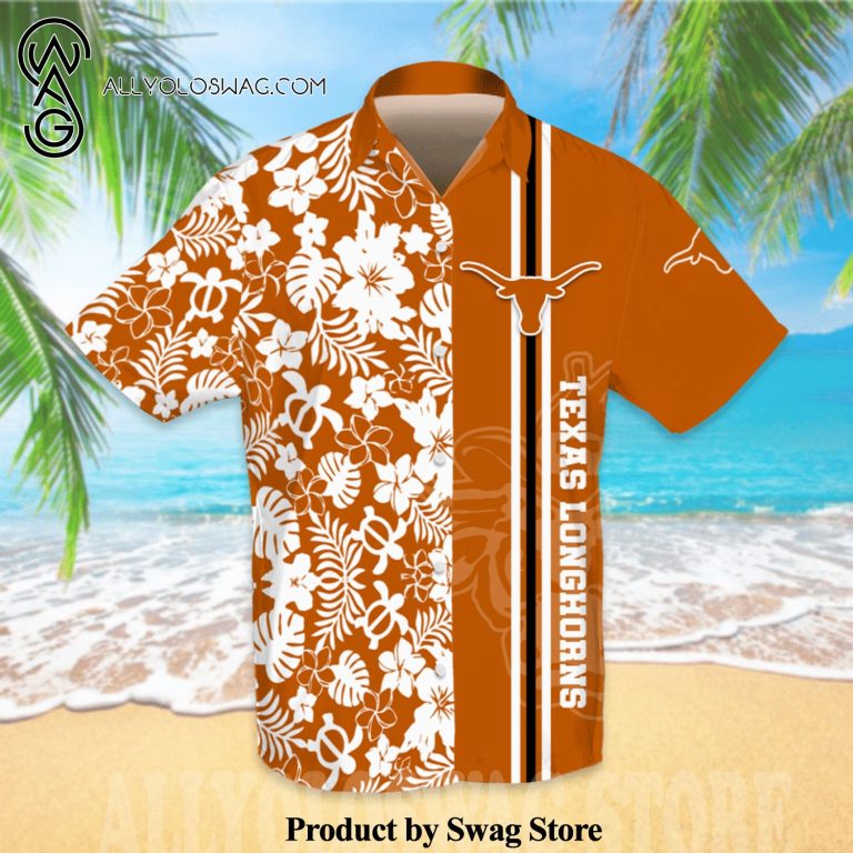 Hawaiian Shirt [Top-selling] Texas Longhorns All Over Print Flowery Short Sleeve Dress Shirt Hawaiian Summer Aloha Beach Shirt – Orange