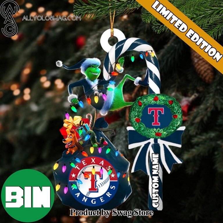 NOTE: [Top-selling] Texas Rangers MLB Custom Name Grinch Candy Cane Christmas Tree Ornament