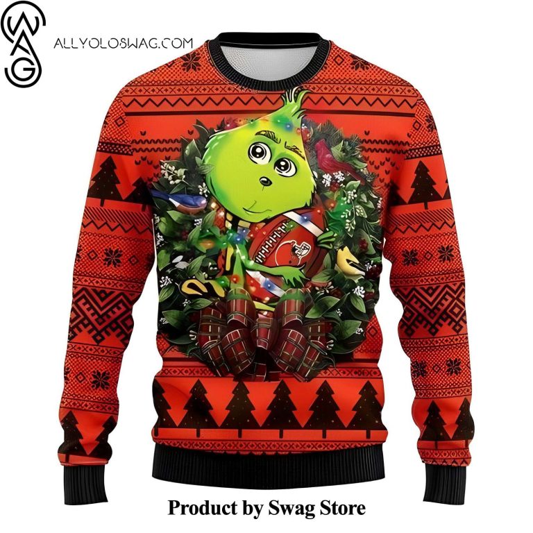 NOTE: [Top-selling] The Cleveland Browns NFL Cute Grinch Funny Xmas Grinch Ugly Christmas Sweater