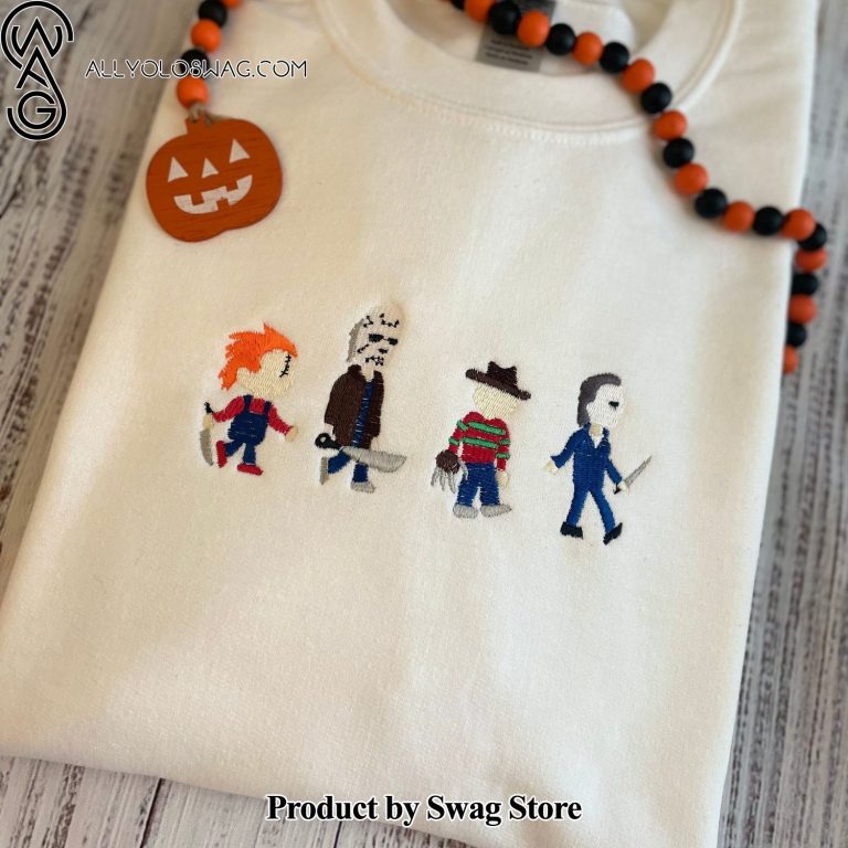 NOTE: [Top-selling] The Horror Crew Embroidered Sweatshirt, Halloween Crewneck, Embroidered Sweatshirt