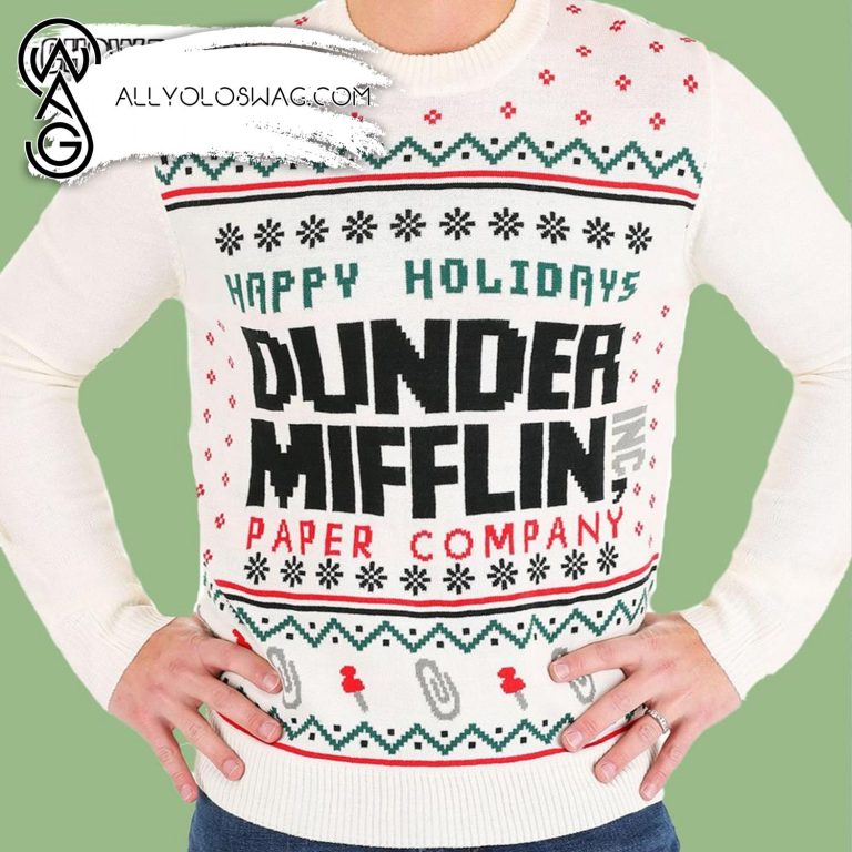 [Top-selling] The Office Knitting Pattern Ugly Christmas Sweater White Dunder Mifflin