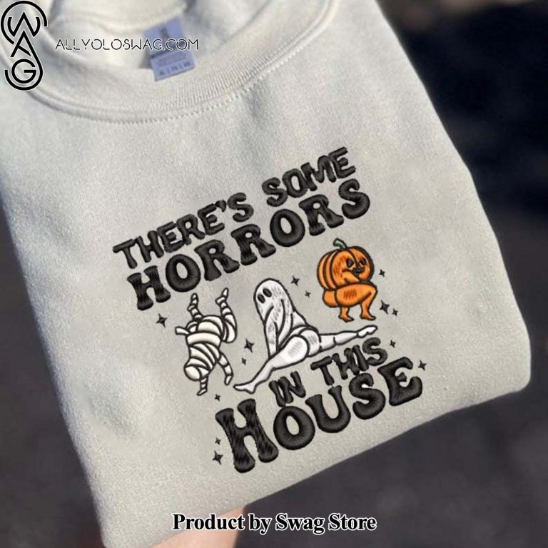 NOTE: [Top-selling] There’s Some Horrors In This House Embroidered Sweatshirt, Vintage Ghost Halloween
