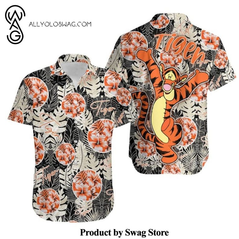 Some details about our product [Top-selling] Tigger Winnie The Pooh Hibiscus Leaf Pattern Disney All Over Print Hawaiian Shirt – Black