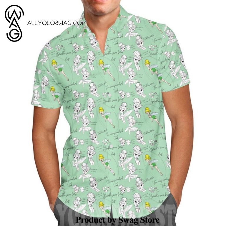 Some details about our product [Top-selling] Tinkerbell Sketches Disney Cartoon Graphics Inspired All Over Print Hawaiian Shirt – Green