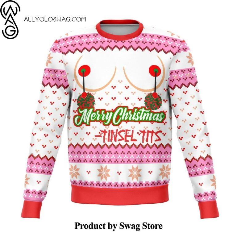 Some details about our [Top-selling] Tinsel Tits Funny Merry Christmas Wool Holiday Sweater