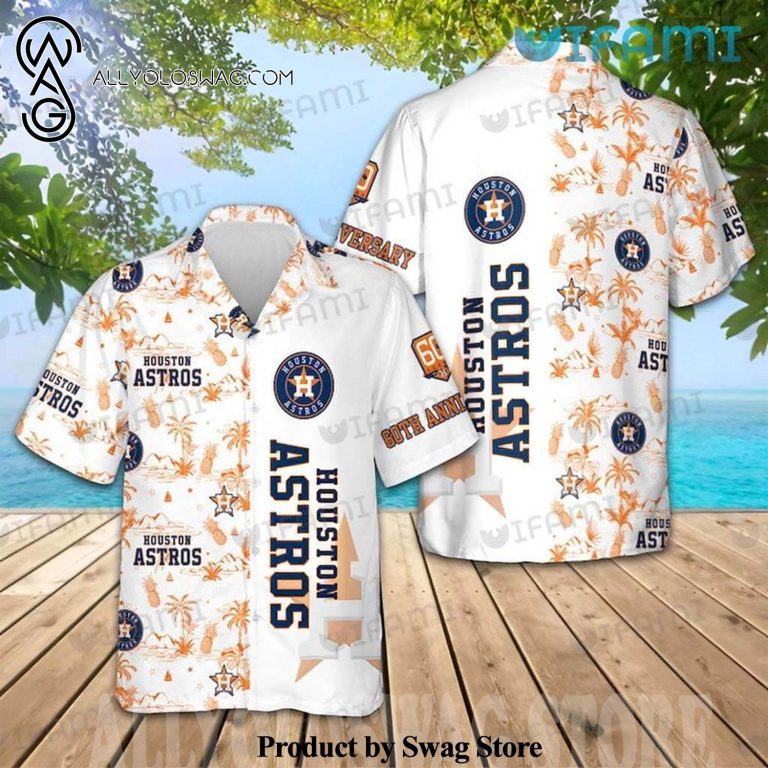 [Top-selling] Tropical 60th Anniversary Pineapple Coconut Tree Houston Astros Gift Hawaiian Shirt was hand-tailored in the early days of fashion. This might happen in the comfort of one’s own home or at a custom tailor’s business. These stores immediately sprang up all across the islands, especially in plantation towns and Honolulu. Newly accessible fabrics from throughout the world were sold at dry goods stores, including printed silk from Japan, raw silk, batik, and rayon from the United States mainland, and cotton cloth for kimonos and yukatas.Hawaiian history had long been shaped by Asian immigrants, and apparel designs reflected this. Short- and long-sleeved shirts, as well as women’s skirts, were created using pre-printed textiles from China and Japan and were based on Asian clothing styles. These bright blouses and dresses were the forerunners of today’s Aloha attire. On the islands, we say “ono” to describe something that is pleasantly cool.