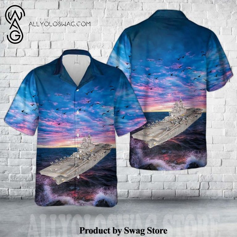 Hawaiian Shirt [Top-selling] US Navy America-class amphibious assault ship Full Printed Summer Sets Hawaiian Shirt
