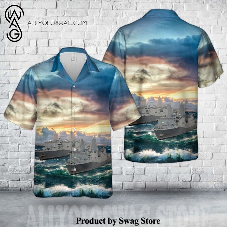 [Top-selling] US Navy San Antonio-class amphibious transport dock Full Printing Summer Sets Hawaiian Shirt