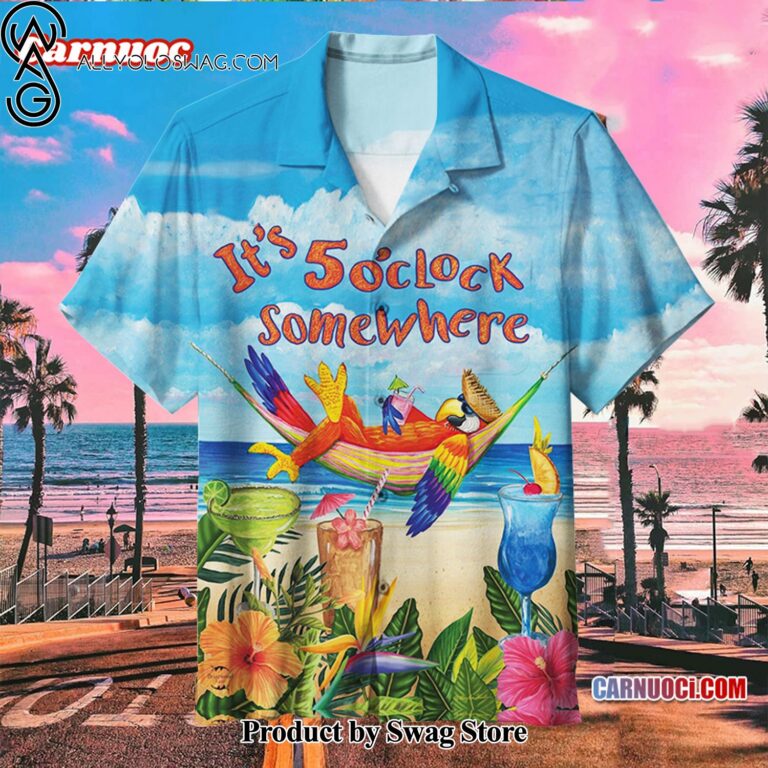 [Top-selling] Vacation Parrot It’s 5o’clock somewhere Colorfast Hawaiian Shirt