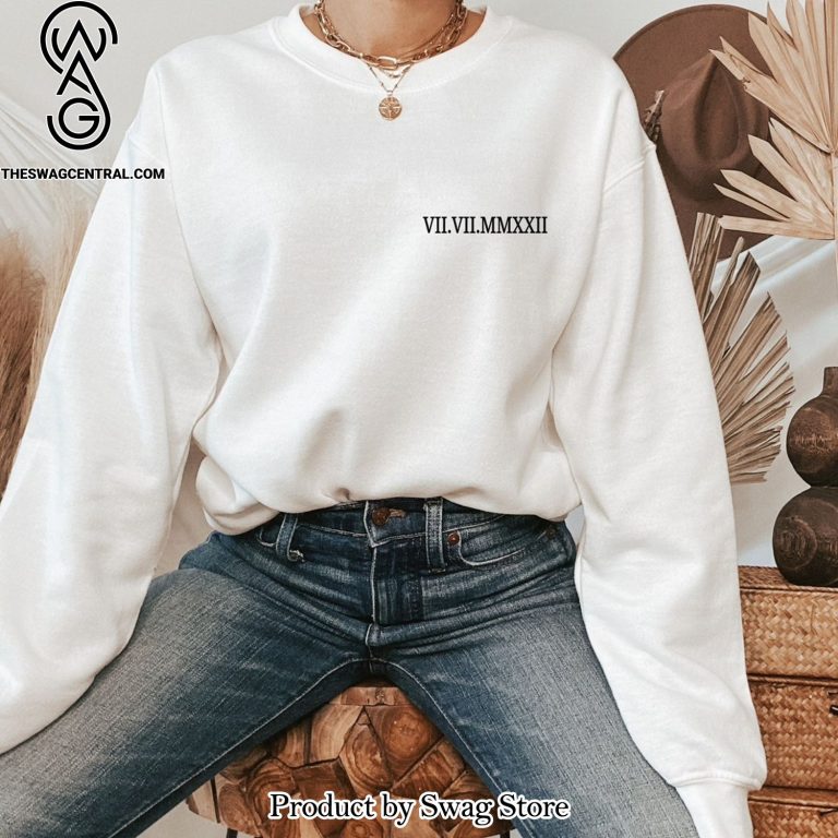 NOTE: [Top-selling] Valentine Custom Roman Numeral Embroidered Sweatshirt Personalized Couple Embroidered T-shirt Numeral Anniversary Date