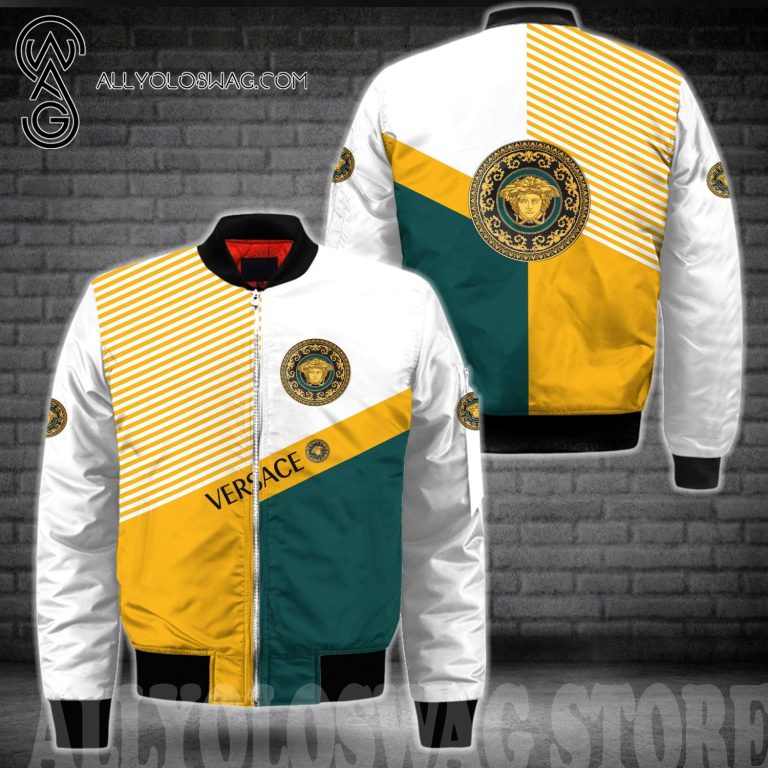 [Top-selling] Versace Classic Symbol White And Green Bomber Jacket