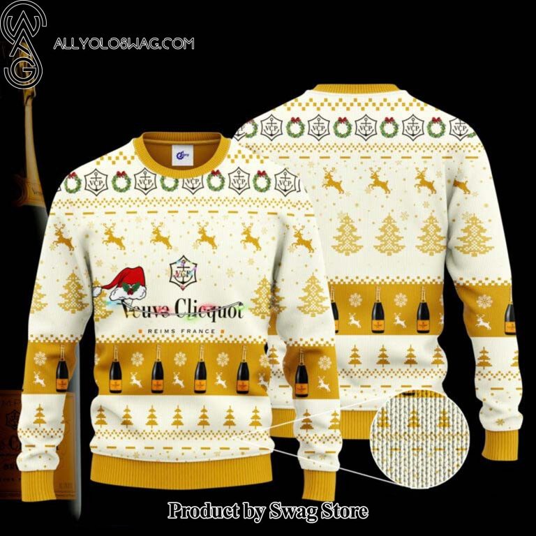 NOTE: [Top-selling] Veuve Clicquot Santa Hat Christmas For Christmas Gifts 3D Printed Ugly Christmas Sweater