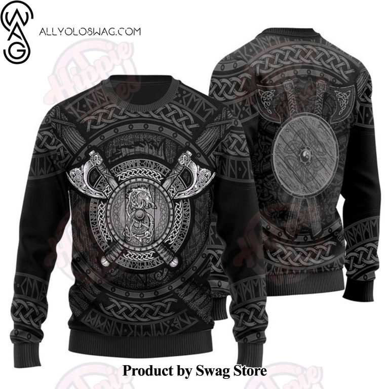 Some details about our [Top-selling] Viking Axes & Shield Wool Holiday Sweater