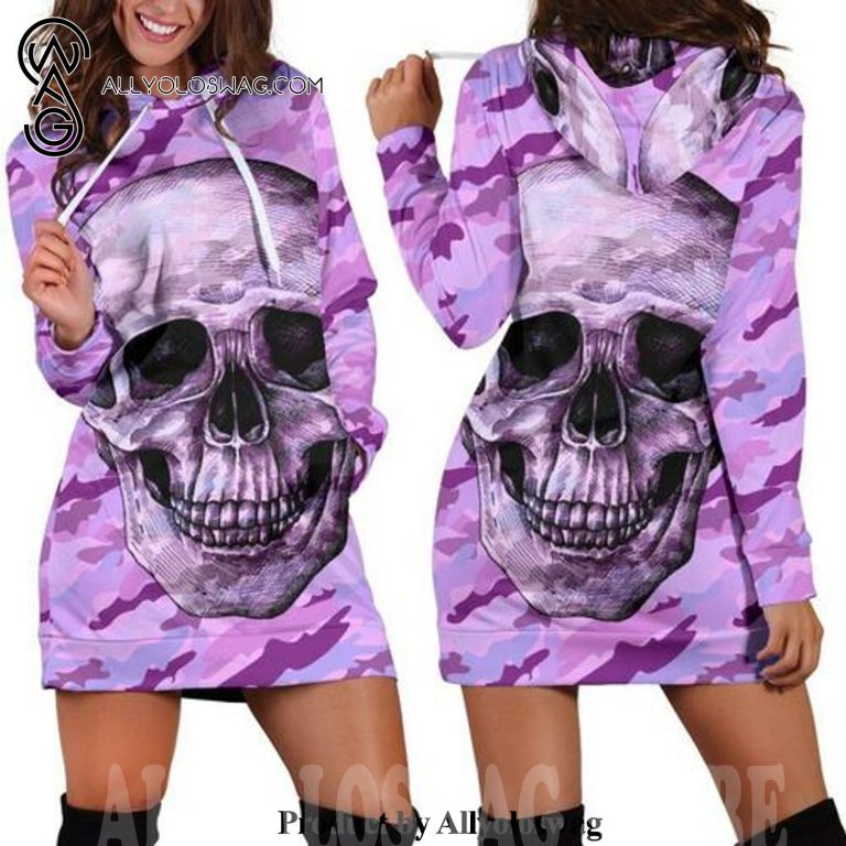 Three Outfit Ideas For A Hoodie Dress [Top-selling] Violet Camo Skull Full Printing Hoodie Dress